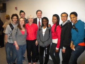 On May 18, 2010, Browsing Through Birke’s premiered to a sold out crowd in downtown Lowell at the Lowell National Historical Park Visitor Center, barely a block away from the former Birke’s Department Store building. Friends, family, and former shoppers enjoyed visiting with Sally and perusing wonderful Birke’s memorabilia. A second screening of the film will take place later this year. Above photo: Teens from Lowell’s United Teen Equality Center stand with Szifra Birke at the premiere of Browsing Through Birke’s.